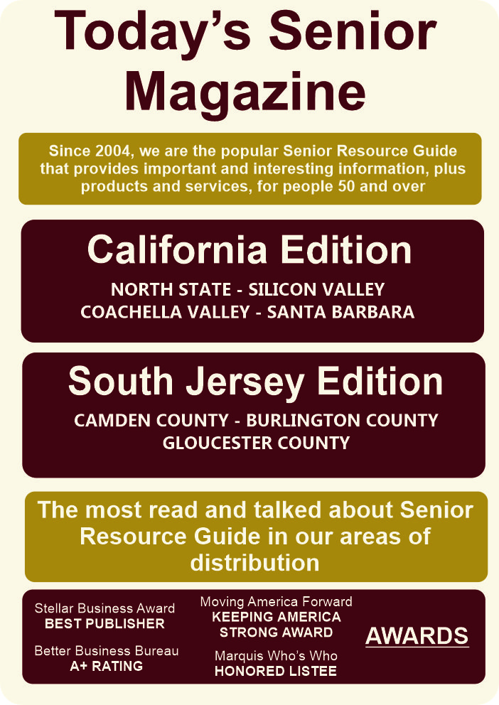 "I am 62 and really enjoy Today's Senior Magazine because it includes some actual real information. Not patronizing or condescending as so many publications geared towards our age group can be, as if we are idiots." V.A. Grass Valley, CA